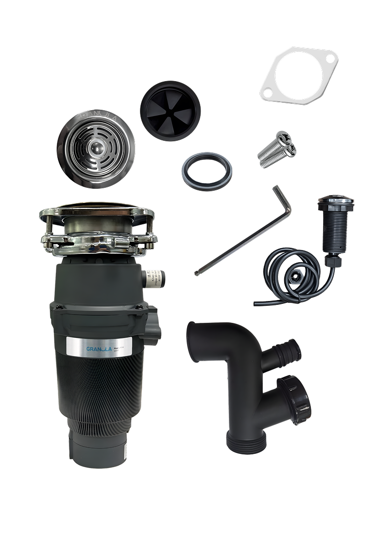 Установка измельчителя не требует сложных манипуляций, он совместим с мойками толщиной до 20 мм и имеет диаметр сливного отверстия 114 мм. В комплект входят все необходимые элементы, включая рассекатель, толкатель с ситечком и выпускное колено, что позволяет подключать до четырех устройств одновременно. Это освобождает пространство под мойкой для других нужд, таких как установка системы хранения мусора.