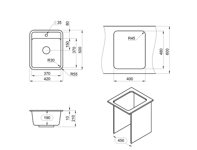 Компактная и вместительная мойка, с удобной площадкой под смеситель с функциональной, прямоугольной чашей, отлично подходит для кухни любого размера. Дополнительная комплектация к данной модели не предусмотрена.