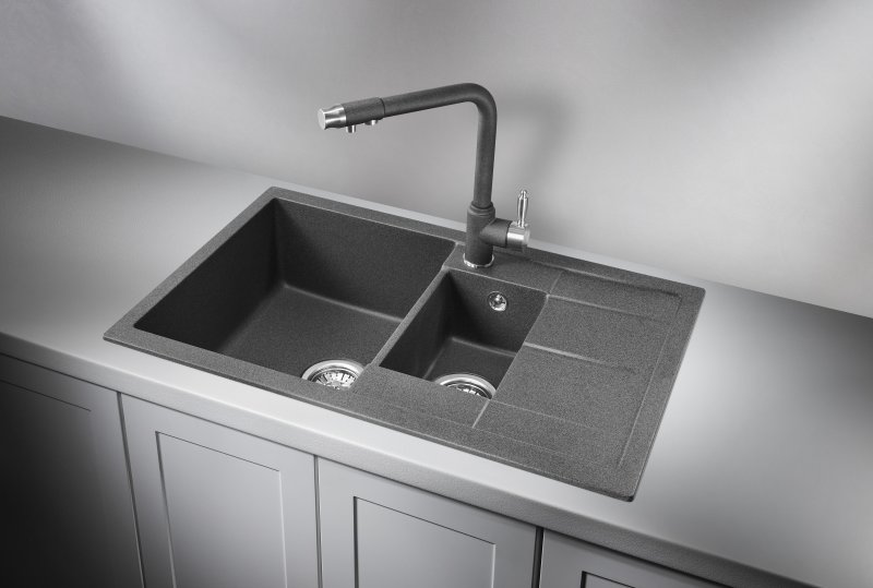 7802, ГРАФИТ (ЧЁРНО-СЕРЫЙ), кухонная мойка, кварц