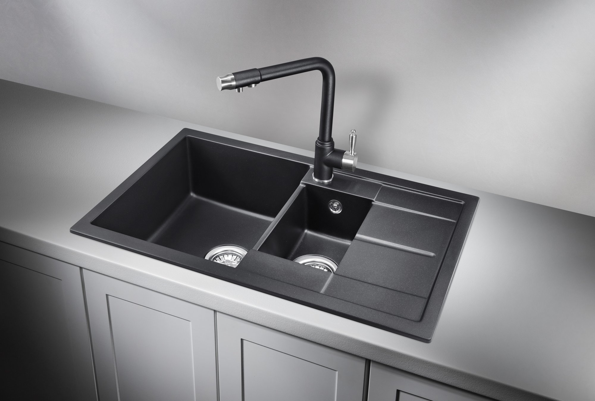 Кухонная мойка GRANULA GR-7802, ШВАРЦ (чёрный металлик)
