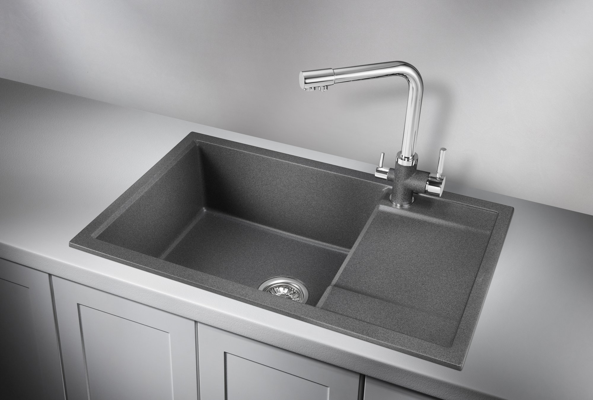 7805, ГРАФИТ (ЧЁРНО-СЕРЫЙ), кухонная мойка, кварц