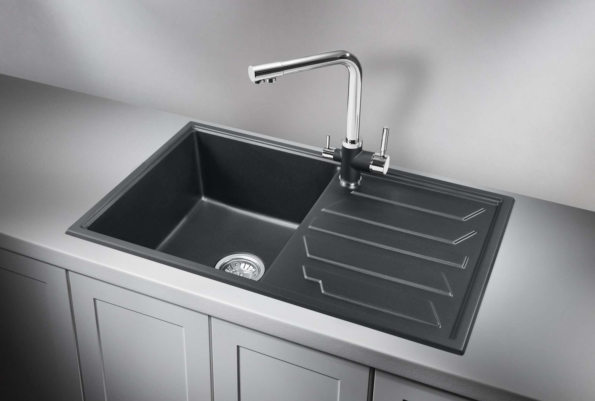 Кухонная мойка GRANULA GR-8002, ШВАРЦ (чёрный металлик)