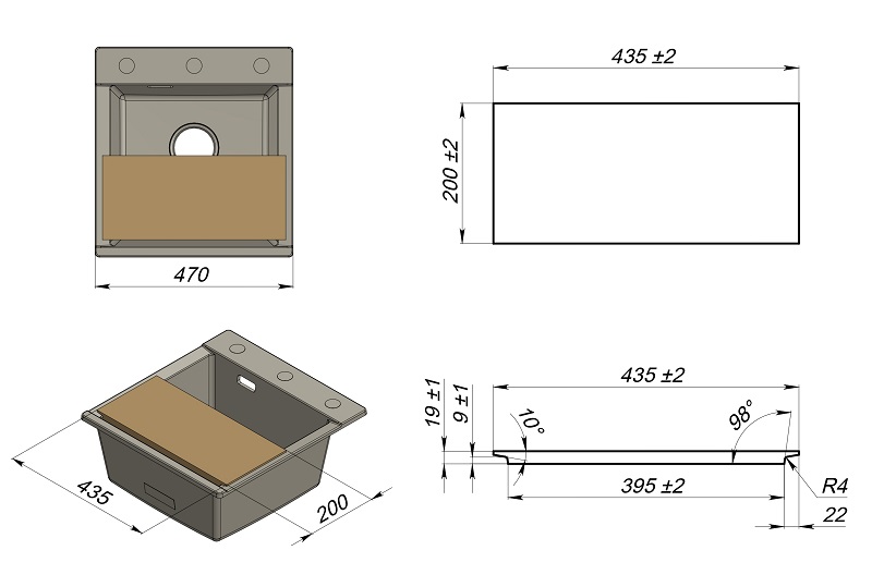 Сифон с отводом для бытовой техники, разделочная доска (ясень)