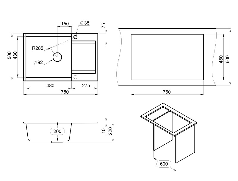 Ширина шкафа (см) Мойки кухня