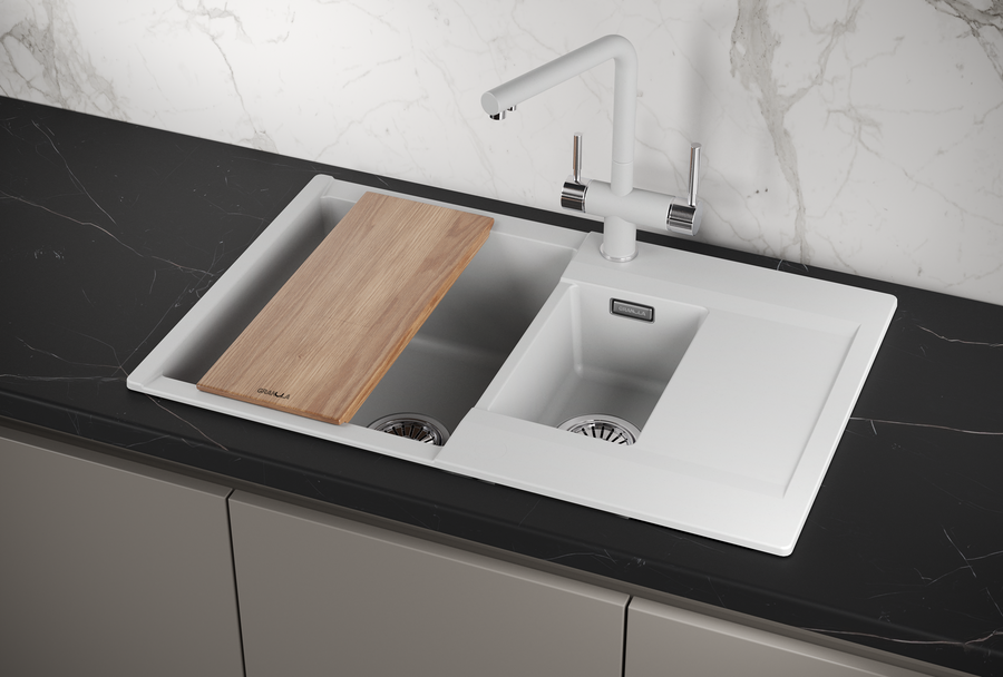 Представляем Granula Estetica - двойную кварцевую мойку с 7 вариантами цветов и разделочной доской из ясеня в комплекте. Прямоугольная форма, крыло, перелив и гарантия на 5 лет - все это для вашего удобства и комфорта. Подходит для измельчителей и установки на любой кухне. Сделано в России.