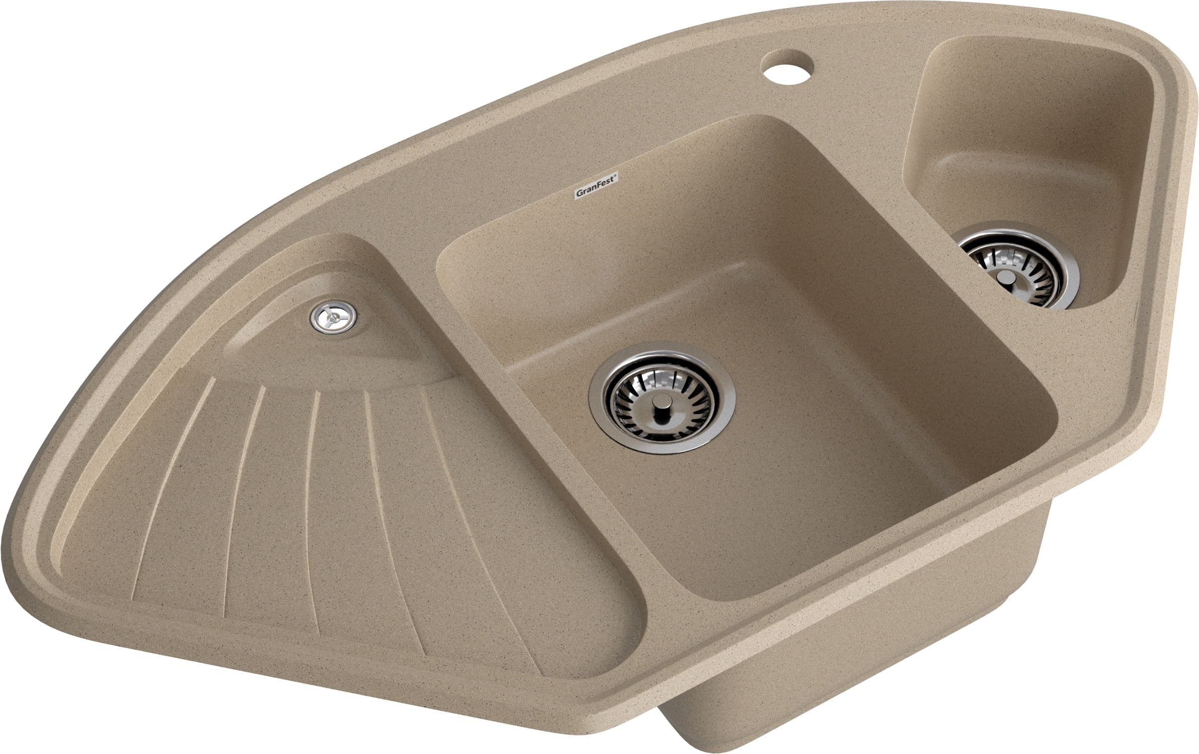 GranFest Композит Мойка CORNER 1040E угловая 1,5-чаши+крыло 1039*560мм песочный арт.GF-