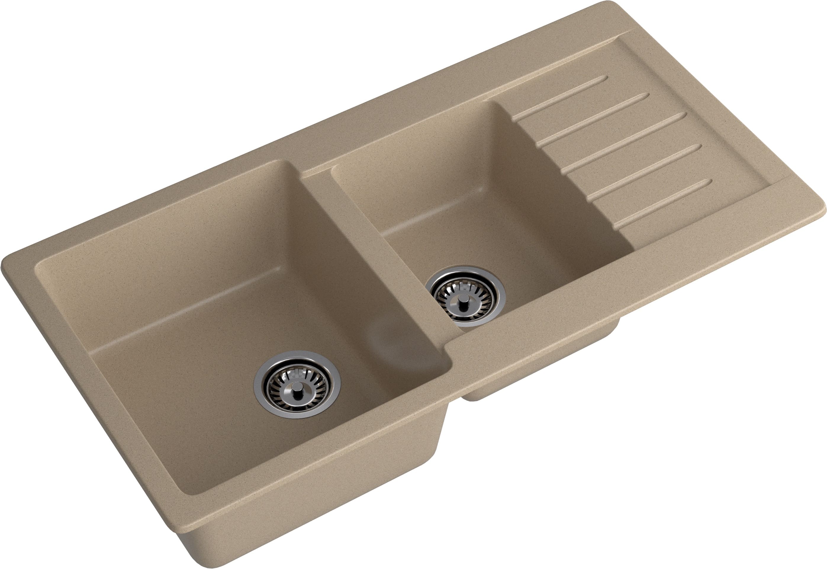 GranFest Композит Мойка PRACTIK 980KL 2 чаши+крыло 980*510мм песочный арт.GF-