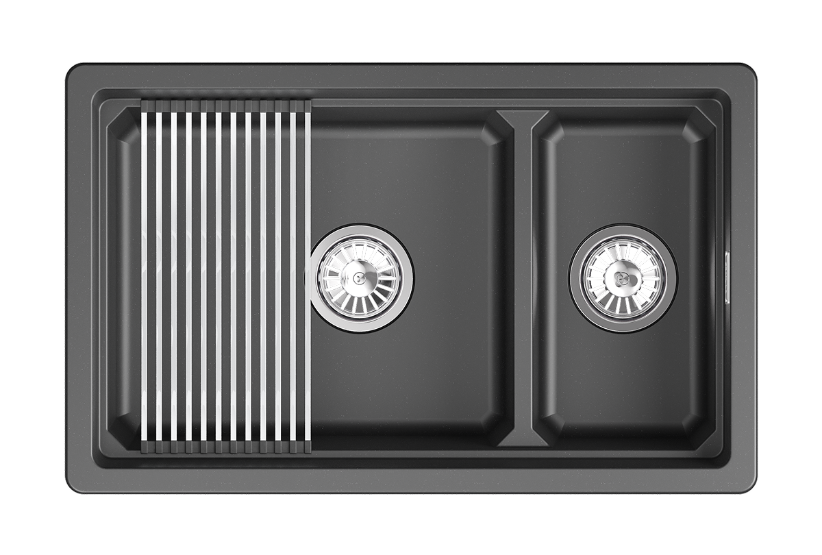 Двухсекционная мойка прямоугольной формы для установки под столешницу в шкаф 800мм. В каждой чаши мойки есть удобная площадка для установки ролл-мата или разделочной доски. Мойка выполнена из кварцевого композитного материала высокой плотности и гигроскопичности, что обеспечивает не менее 20 лет надежной эксплуатации. Ролл-мат и дозатор из нержавеющей стали уже включены в комплект. Выберите GRANULA KS-7804U, чтобы получить привлекательный и удобный аксессуар для вашей кухни.
