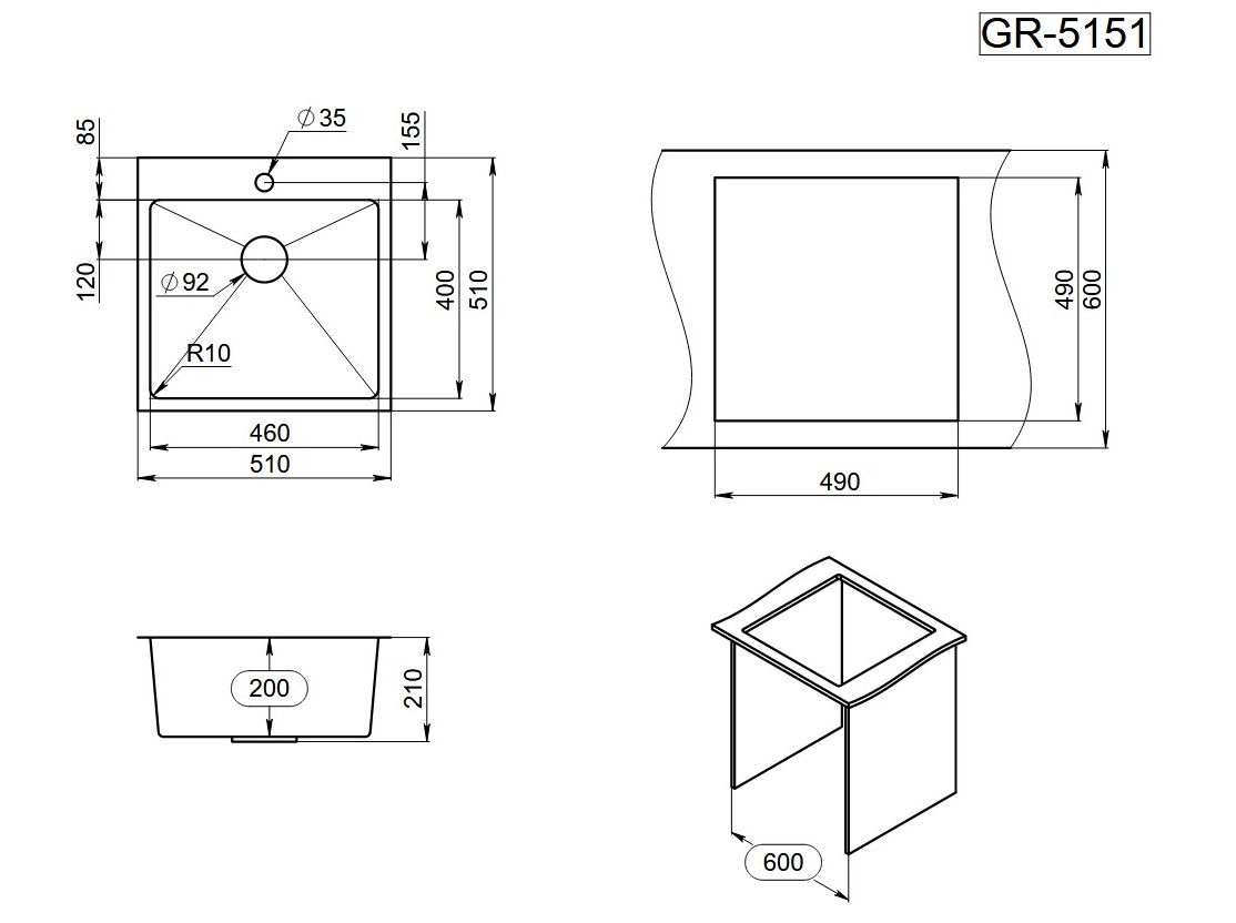 Кухонная мойка GRANULA GR-5151, ЗОЛОТО САТИН