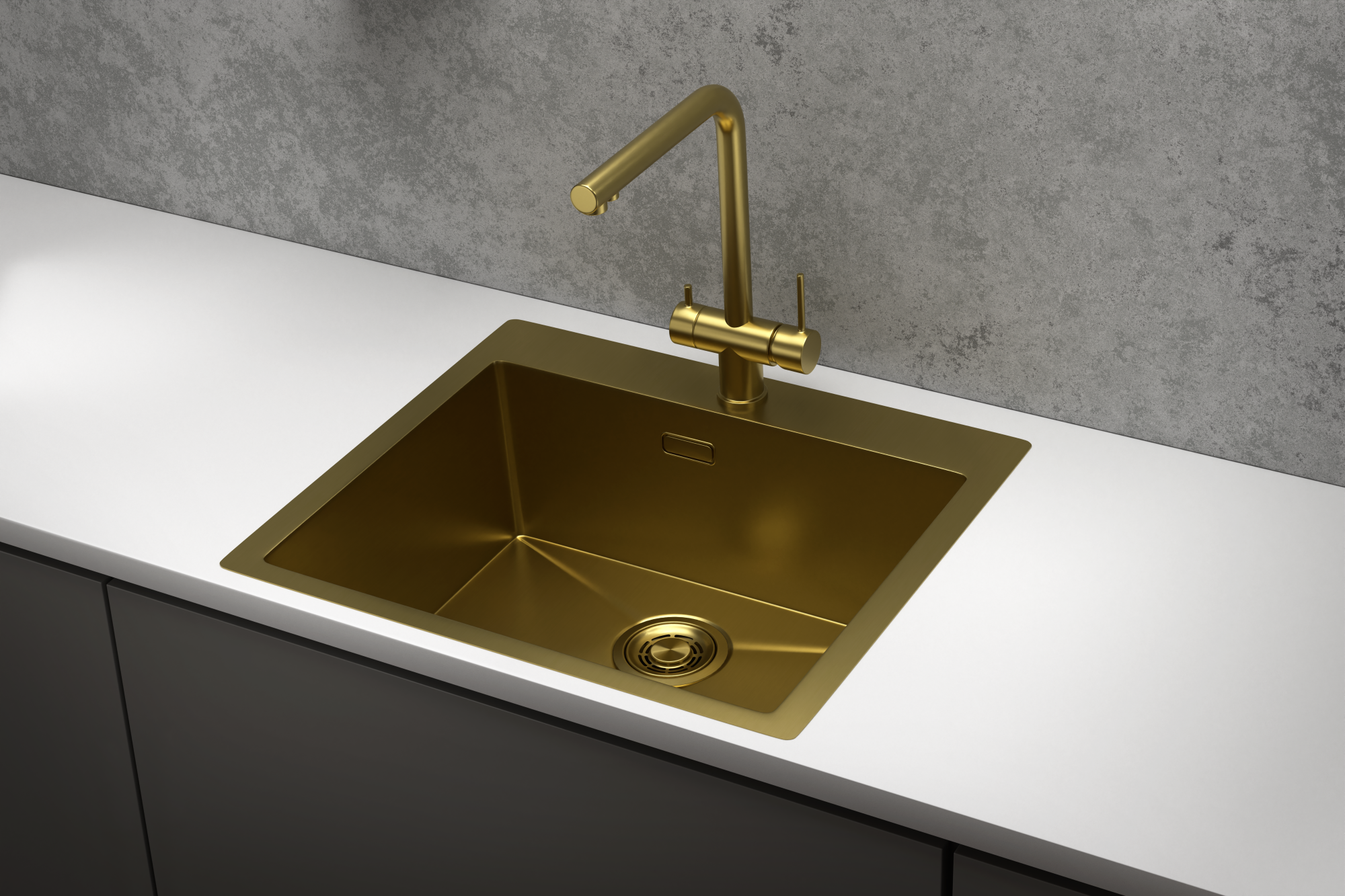 5951, ЗОЛОТО САТИН, стальная кухонная мойка