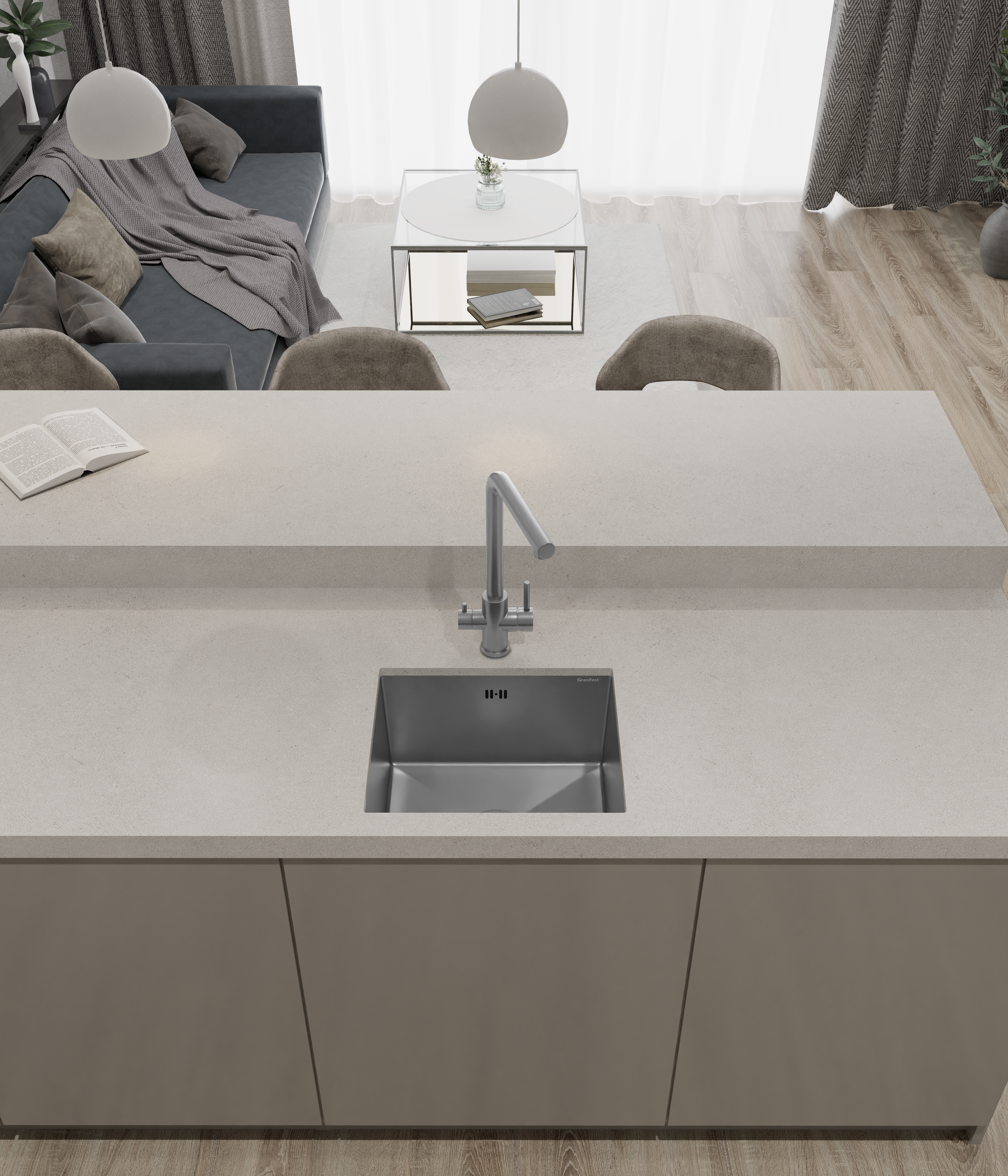 мойка для кухни из нержавеющей стали AISI304, марка «GranFest METAL» – 1 шт., сливная арматура – 1 шт., крепеж для подстольного монтажа – 6 шт., технический паспорт – 1 экз., инструкция по установке – 1 экз., упаковка: короб из плотного пятислойного гофрокартона – 1 шт. |