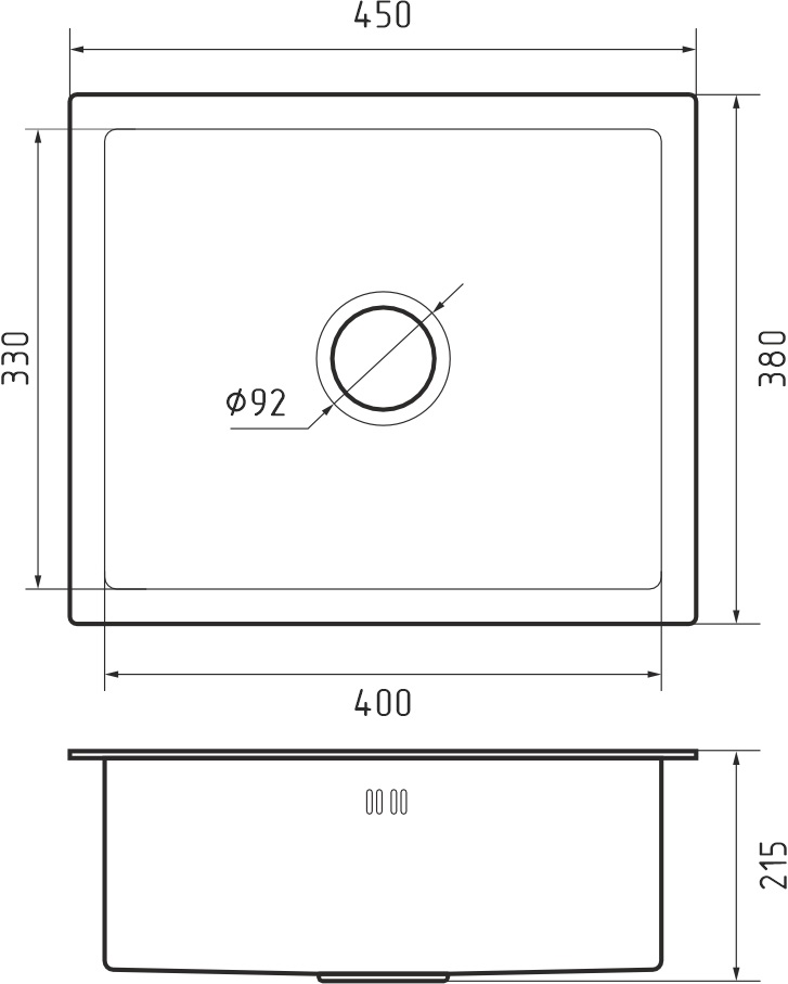 GRANFEST METAL Мойка нерж.сталь AISI 304 1 чаша 450*380*215 мм арт.GF-4538 нерж