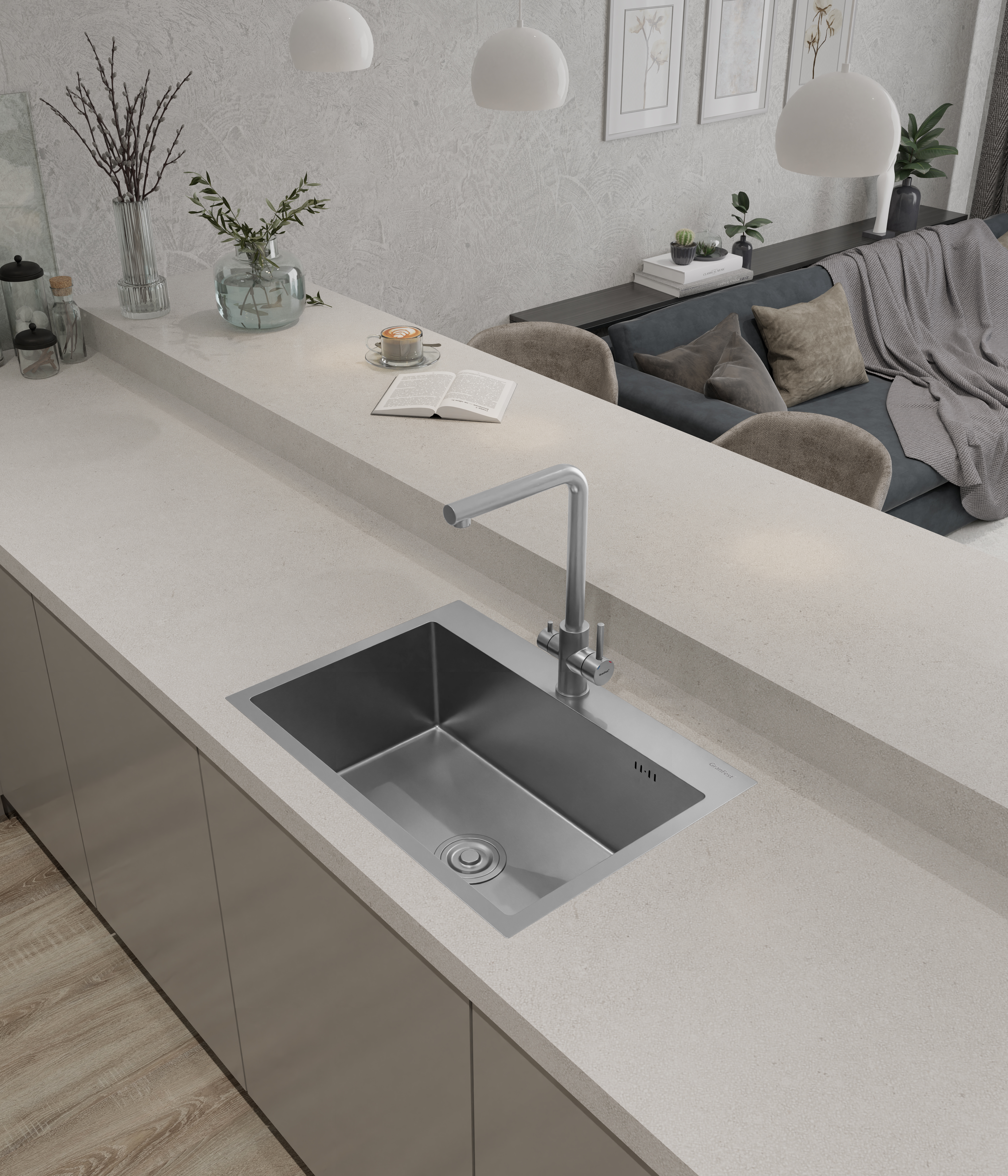 мойка для кухни из нержавеющей стали AISI304, марка «GranFest METAL» – 1 шт., сливная арматура – 1 шт., крепеж для врезного монтажа – 6 шт., технический паспорт – 1 экз., инструкция по установке – 1 экз., упаковка: короб из плотного пятислойного гофрокартона – 1 шт. |