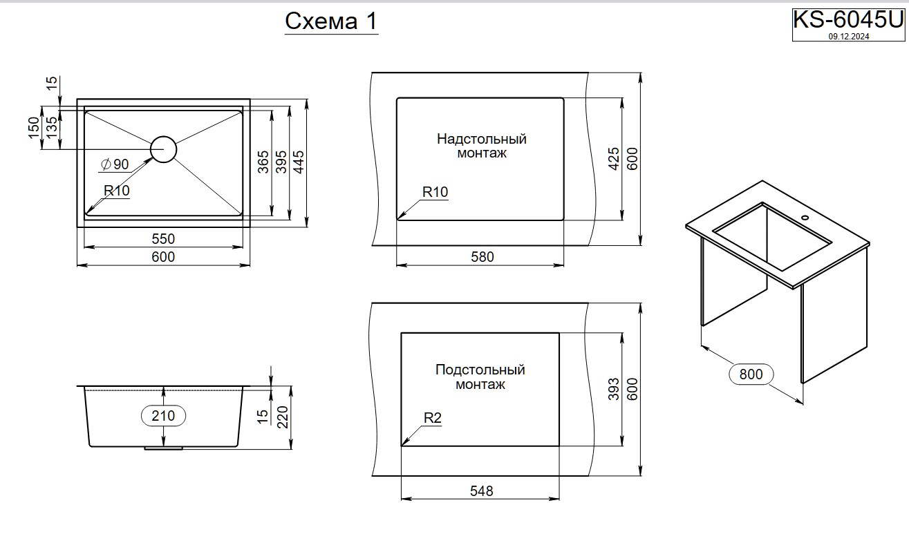Кухонная мойка GRANULA KS-6045U, ЧЕРНЫЙ МАТОВЫЙ