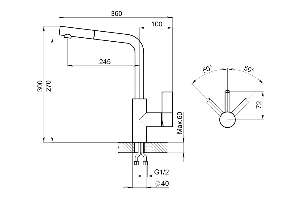 Кухонный смеситель GRANULA 2502, ТУРМАЛИН