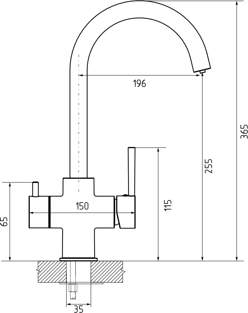 5422 U-обр. D-35мм с краном питьевой воды серый