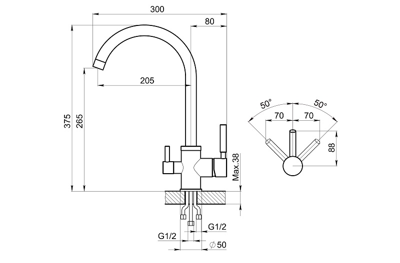 Смеситель для кухонной мойки Granula 2168 изготовлен из высококачественного материала. Латунный корпус обеспечивает длительный срок службы. При этом высокий излив позволяет мыть как мелкую, так и крупногабаритную посуду. Двухрычажная модель смесителя Granula 2168 выполнена с краном для питьевой воды. Фильтрованная вода подается по отдельной трубке и не смешивается с водопроводной водой.