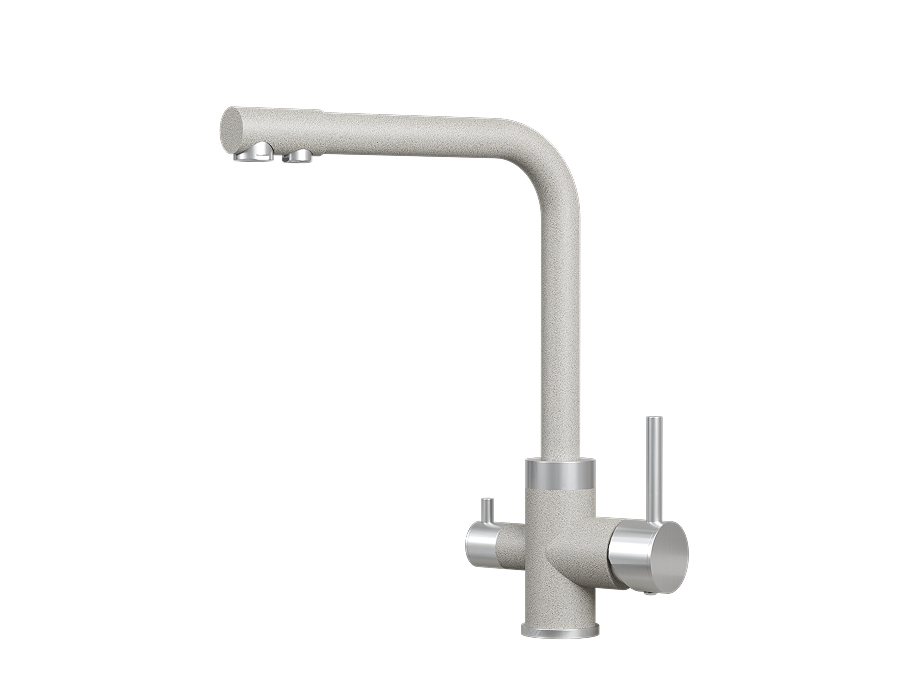 Двойная функциональность: Возможность подключения к фильтру и отдельный выпуск для фильтрованной воды делают этот смеситель универсальным решением для Вашей кухни.