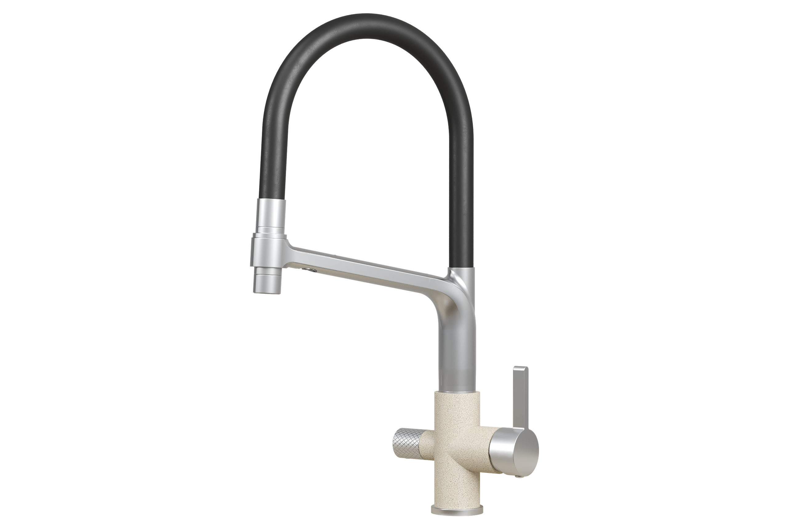 Этот современный смеситель из нержавеющей стали SUS304 станет настоящим украшением Вашей кухни. Гибкий силиконовый излив позволяет направлять струю воды в любую точку мойки, а рычажное управление обеспечивает плавную регулировку температуры и напора.