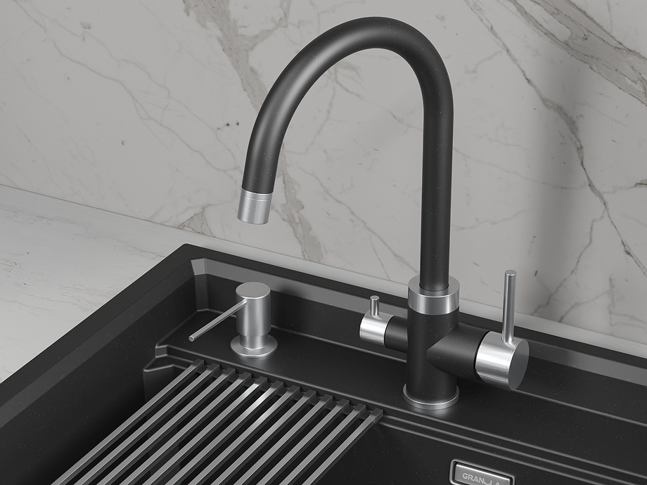 Интеграция с фильтром: Возможность подключения к системе фильтрации воды с отдельным выводом для чистой воды. Переключение между водопроводной и фильтрованной водой осуществляется удобным рычагом.