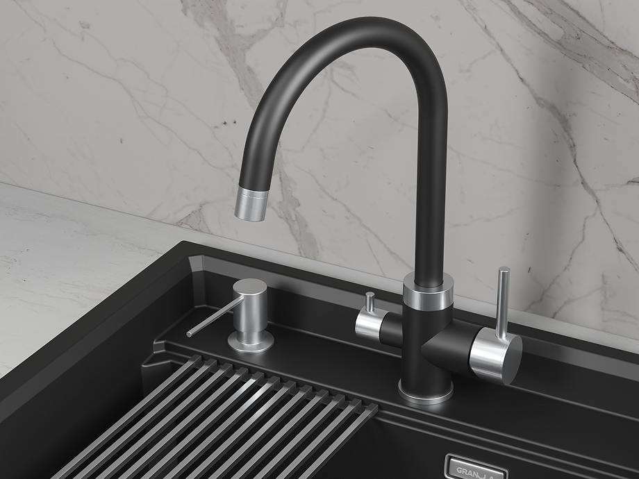 Интеграция с фильтром: Возможность подключения к системе фильтрации воды с отдельным выводом для чистой воды. Переключение между водопроводной и фильтрованной водой осуществляется удобным рычагом.