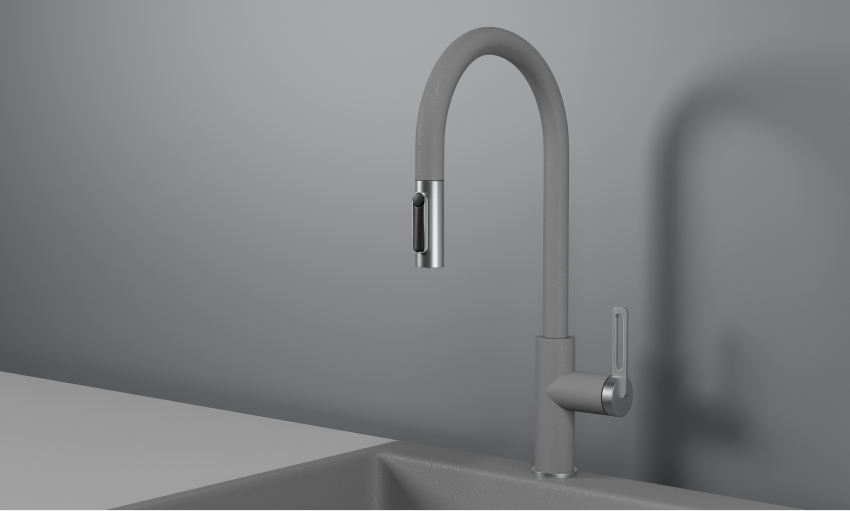 Смеситель для кухни с выдвижным изливом и подключением к фильтру от российского бренда Granula.