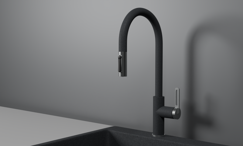 Смеситель для кухни с выдвижным изливом и подключением к фильтру от российского бренда Granula.