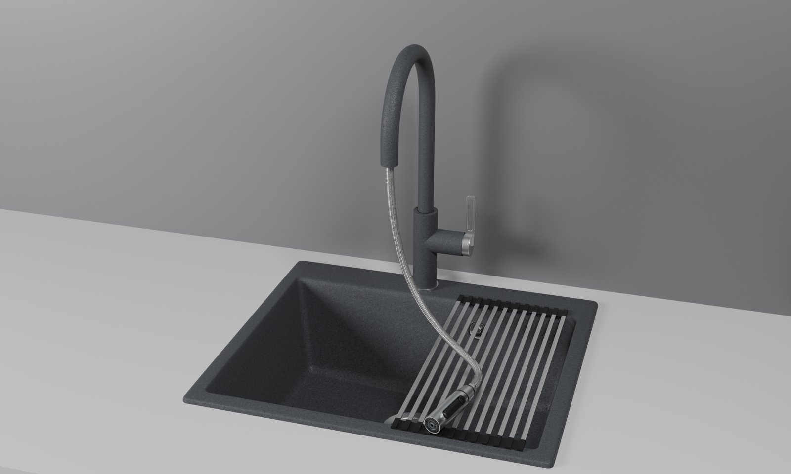 Кухонный смеситель GRANULA с выдвижным изливом с переключением на душ и подключением к фильтру GR-8168, ГРАФИТ