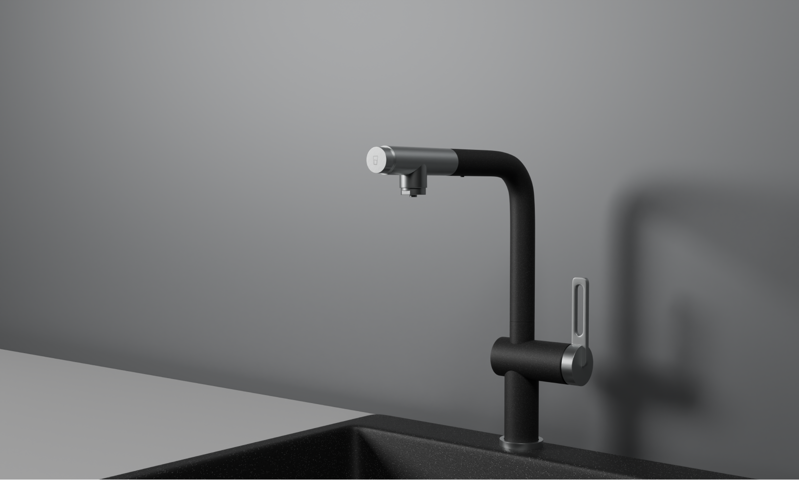 Переключение между режимами подачи обычной и фильтрованной воды – реализована на самом изливе, это даёт возможность экономить пространство вокруг смесителя.