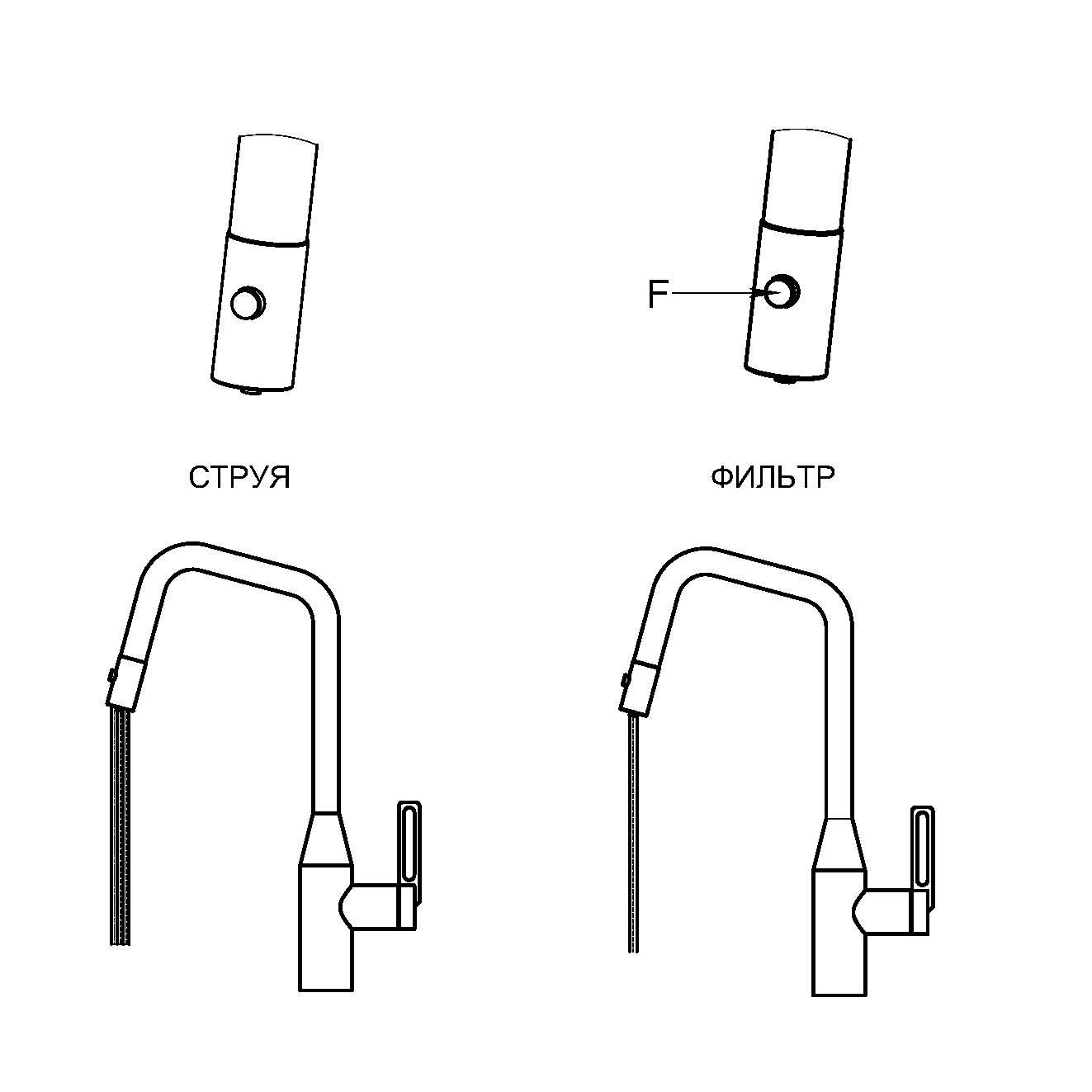 с выдвижным изливом и подключением к фильтру |