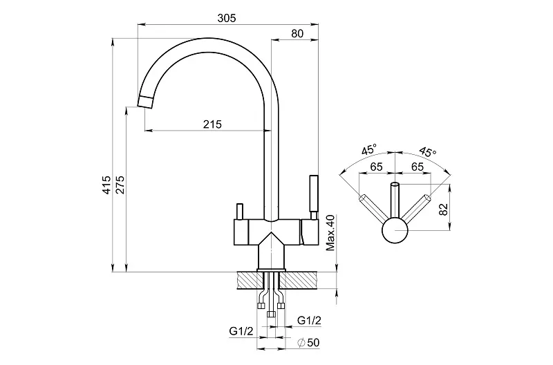Отверстие под смеситель, мм
