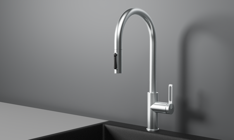 Смеситель для кухни с выдвижным изливом и подключением к фильтру от российского бренда Granula.