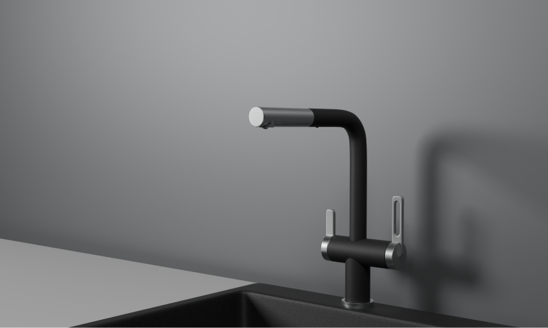 Смеситель для кухни с выдвижным изливом и подключением к фильтру от российского бренда Granula.
