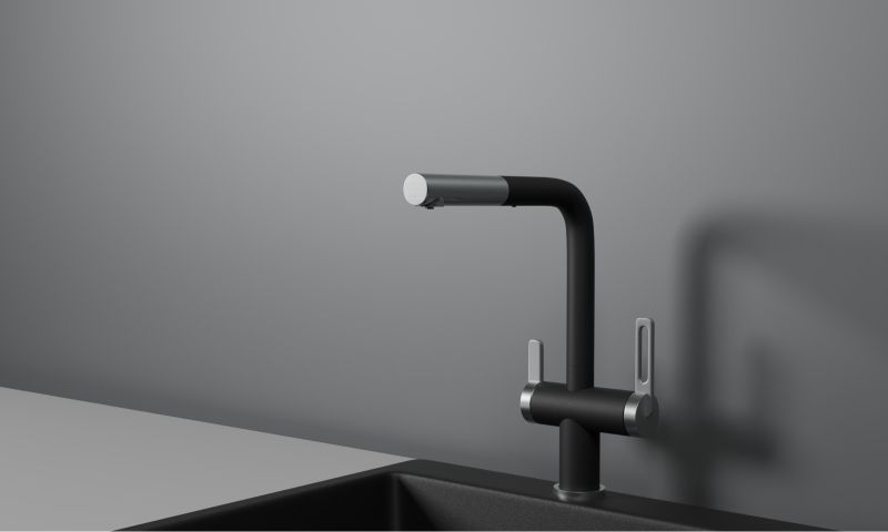 Смеситель для кухни с выдвижным изливом и подключением к фильтру от российского бренда Granula.