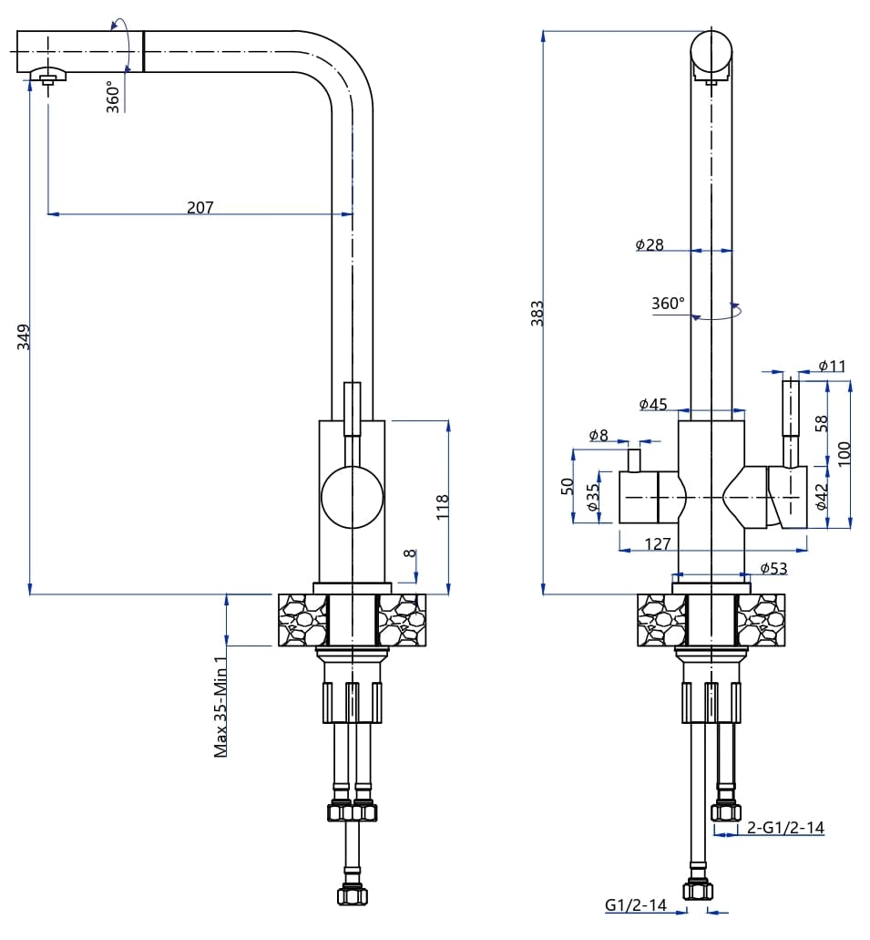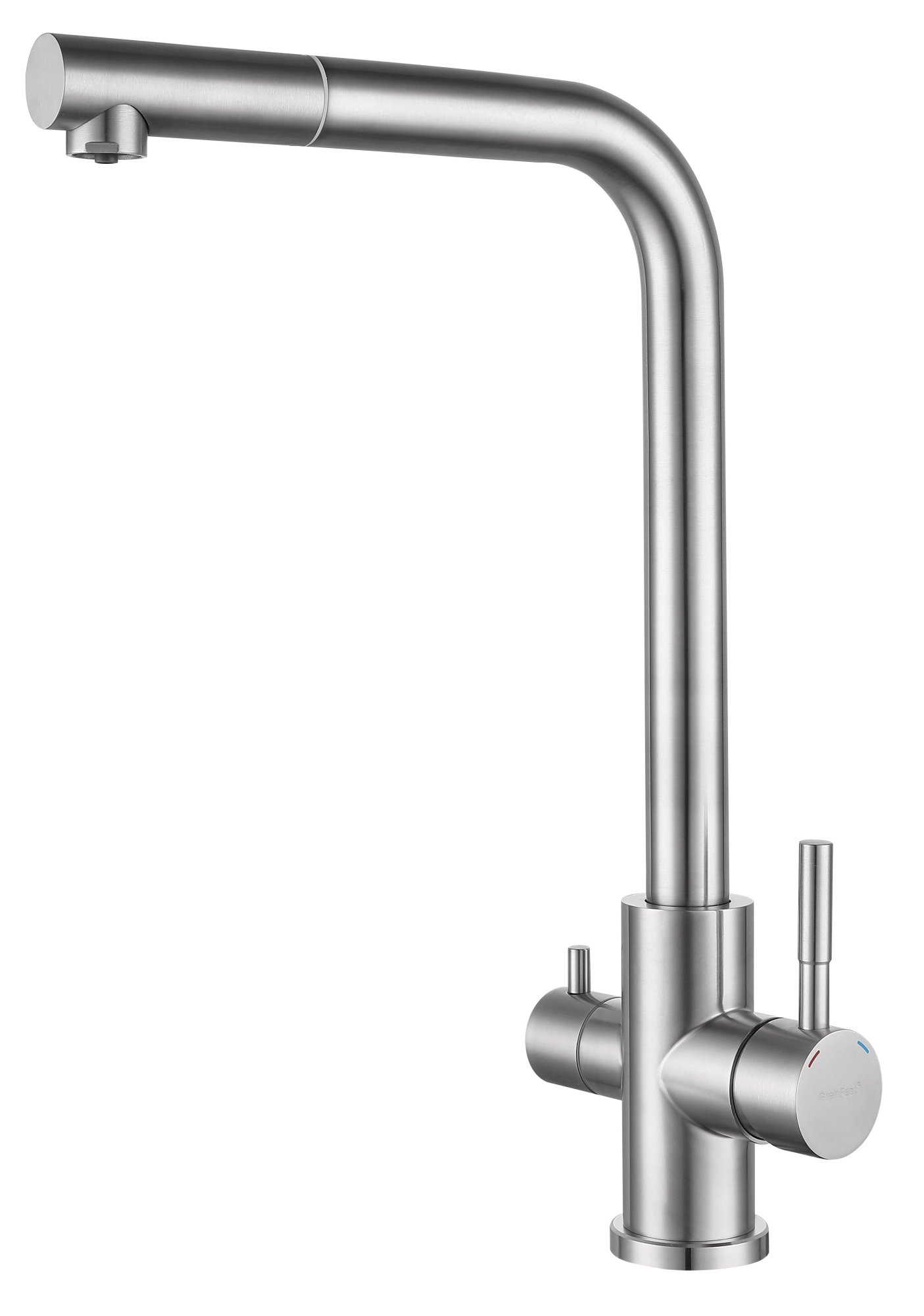 GRANFEST QUARZ Смеситель для кухни Г-обр. с краном питьевой воды D-35мм нержавейка арт. GF-