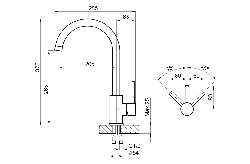 Отверстие под смеситель, мм