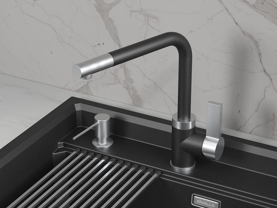 Представляем кухонный смеситель модели GR-5504 из коллекции Granula – идеальное сочетание современного дизайна и надежности. Изготовленный из высококачественной нержавеющей стали, он гарантирует долговечность и устойчивость к коррозии.