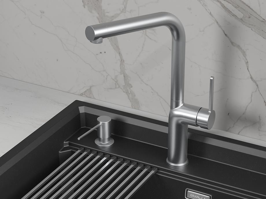 Представляем вашему вниманию кухонный смеситель модели GR-9502 из серии Granula. Этот стильный и функциональный смеситель выполнен из высококачественной нержавеющей стали, что обеспечивает долговечность и устойчивость к коррозии.