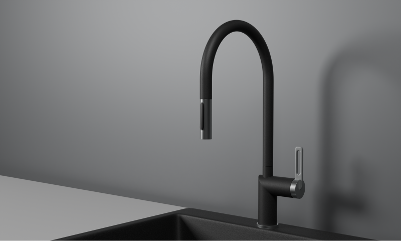 Выдвижной излив – увеличивает охват рабочей зоны и позволяет легко дотянуться до труднодоступных мест.