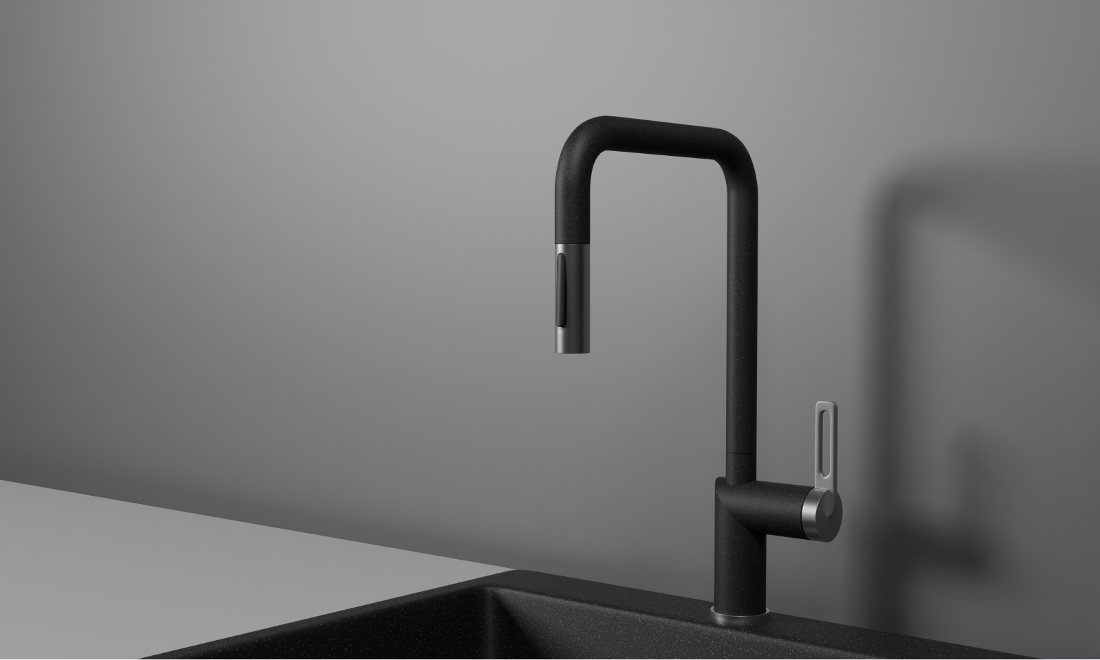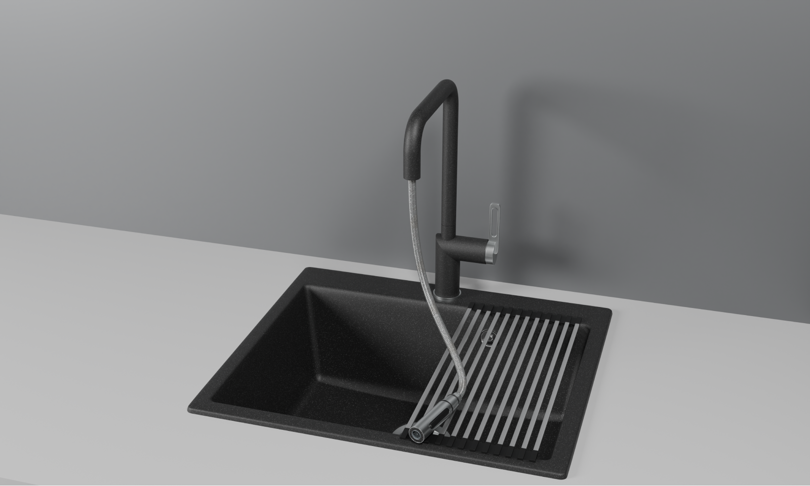 Кухонный смеситель GRANULA с выдвижным изливом и переключением на душ GR-8173, ЧЕРНЫЙ